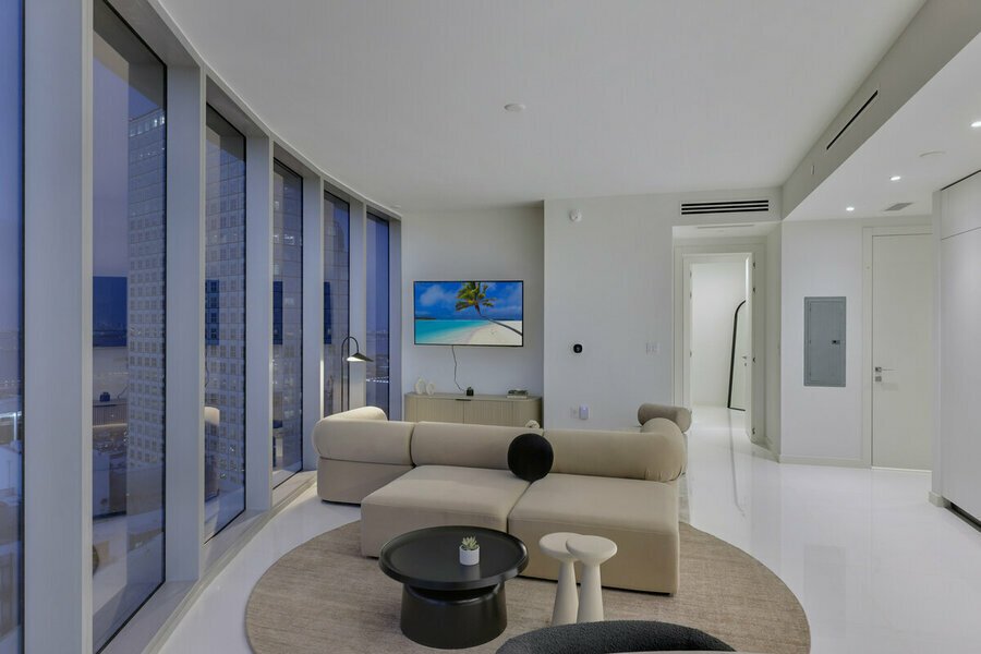 Piso de 1 dormitorio muy espacioso que se ofrece completamente amueblada por profesionales en Sky Residence. Electrodomésticos Gaggenau y Bosch en todos los ambientes.  Ubicada 1 piso debajo de las comodidades. Ascensor semiprivado. Solo 3 vecinos en el piso. Internet de 1000 MBPS de Multitronics LLC: perfecto para trabajar desde casa. Persianas opacas en el dormitorio.
