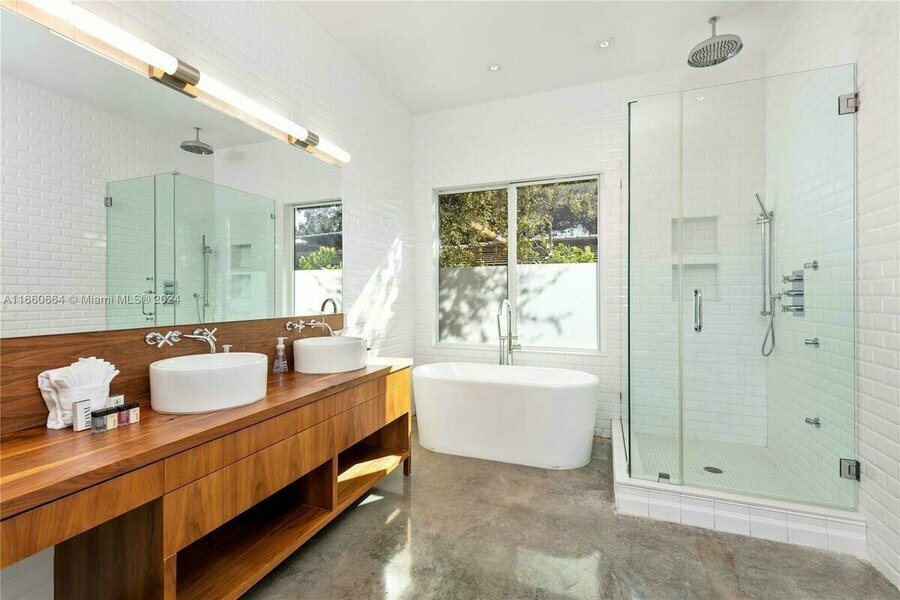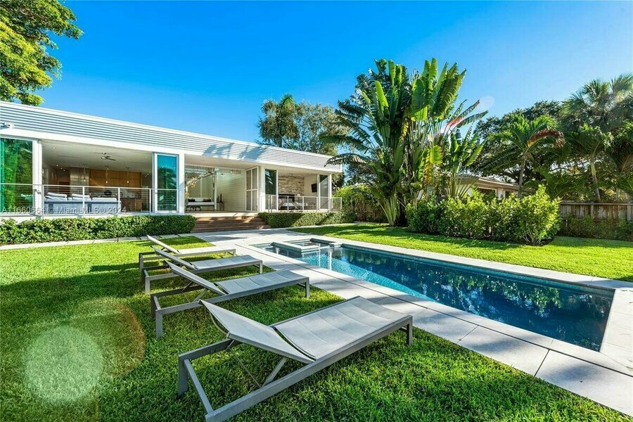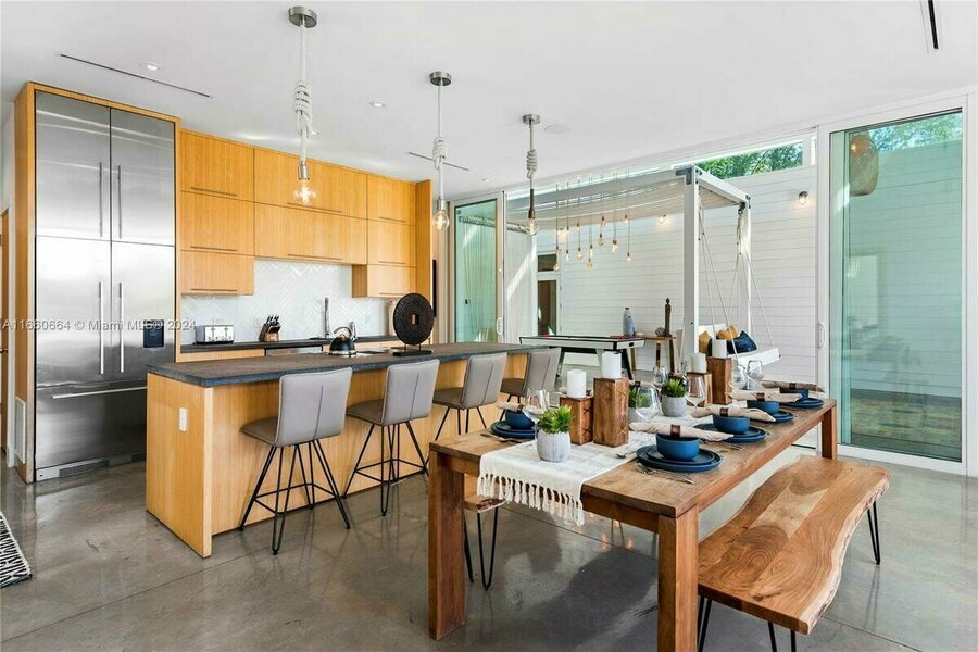 Villa Tulum. Presentamos un santuario único frente al mar en el Upper East Side de Miami, donde el estilo de vida playero se combina con el lujo moderno. Ubicado en un exuberante lote de gran tamaño de 1,021.93 metros cuadrados, este complejo construido en 2017 es perfecto para el entretenimiento, ya que integra a la perfección la vida al aire libre tropical con interiores luminosos y aireados. La casa principal cuenta con una sala de estar abierta al aire libre, un patio cubierto y 4 dormitorios. Una casa de huéspedes independiente de 2 pisos incluye un loft de 2 dormitorios con cocina y baño, cuarto de servicio y almacenamiento. En el exterior, disfrute de una piscina infinita junto al río Miami y un nuevo muelle privado con capacidad para embarcaciones de hasta 19.81 metros sin puentes hacia la bahía.